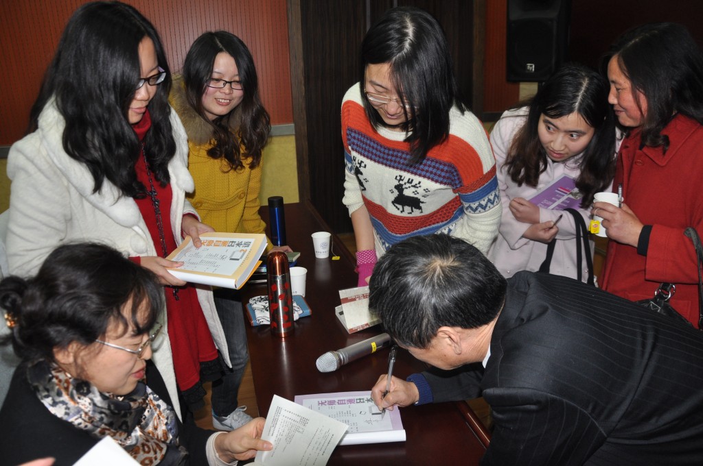 赵老师乐观积极面对生活的态度深深地感染了每一位同学。讲座中赵老师戏称到“一次重大的车祸给了我一个博士学位,一次癌症让我完成了28本书,我相信这一次的灾难还会送给我更多的好东西!”。他曾两次被癌症击倒,又两次战胜死亡回归讲台,如今,仍抱病坚持工作。他的人生就是一本“传奇”的励志教材。与此同时,赵老师还与同学们分享了他在国内首创的“自己录音自己听”“制作记忆卡”等学习外语的窍门和经验,主张快乐学习、实践学习,让在场同学们如醍醐灌顶,大受裨益。