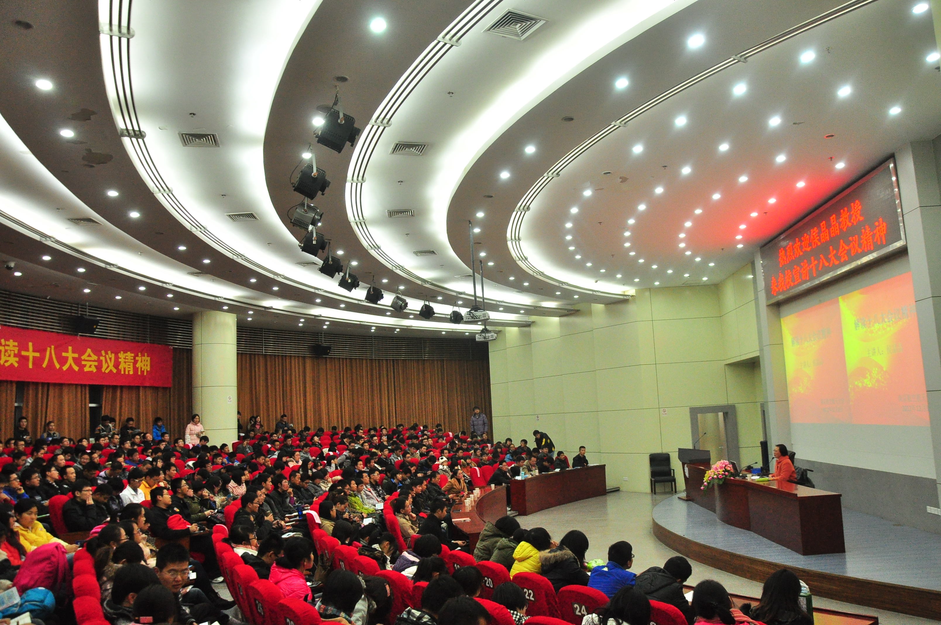 12月3日晚,南京师范大学教育科学学院副教授、硕士生导师、党的十八大代表侯晶晶在我校将军路校区做十八大精神宣讲会。此次报告会由党委宣传部、学生处主办,成人漫画 承办,相关部门负责人及学生党员代表参加了此次报告会。报告会由成人漫画 党委副书记庞小燕主持。