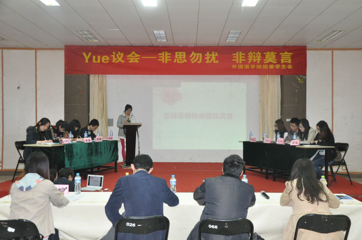 4月1日,成人漫画 在将军路校区艺术中心多功能厅举办了学院首届“Yue”议会。学院英语系副主任王孝存老师、学生处事务科科长张跃作为评委参加了此次会议。