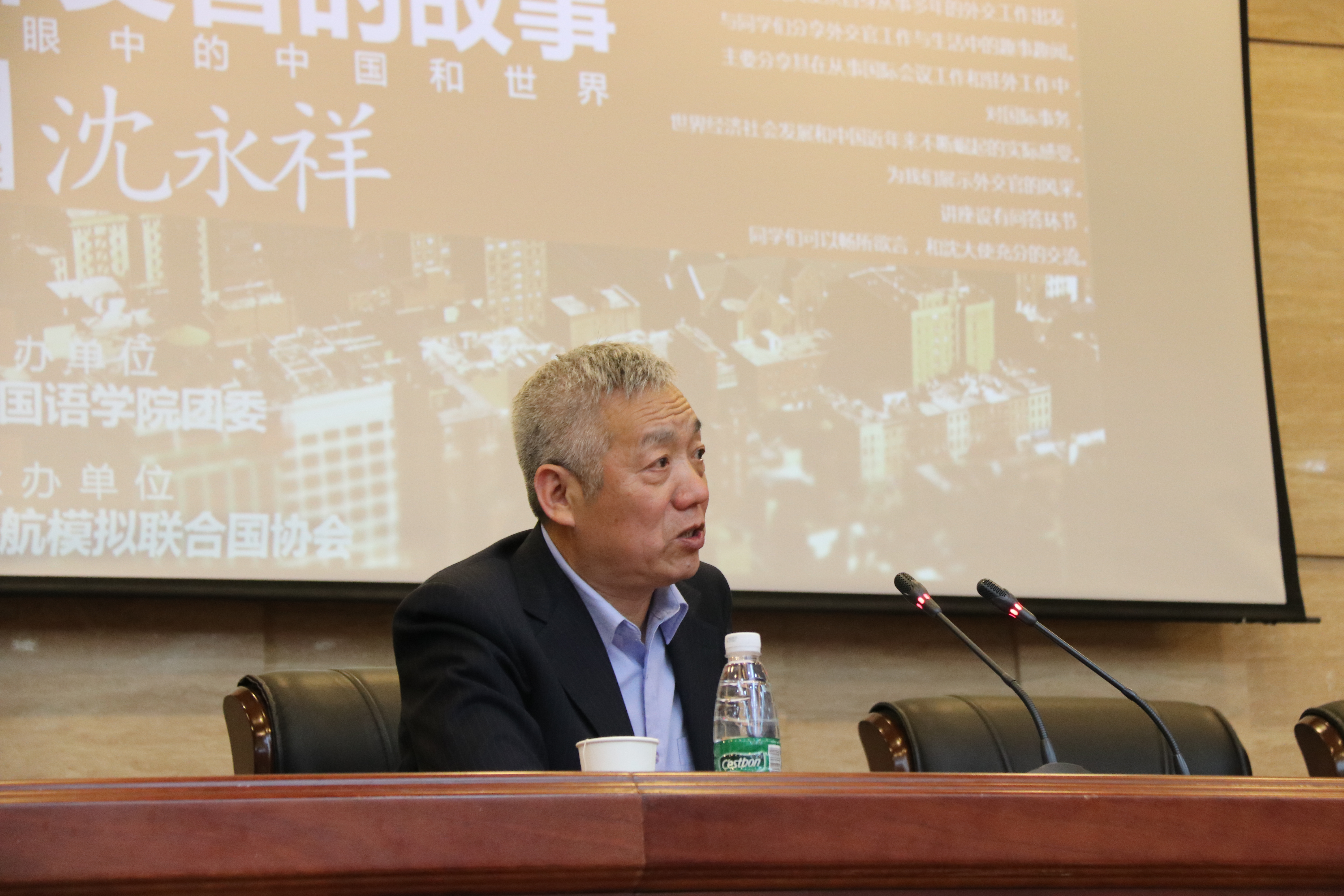 主办、模拟联合国协会承办的“外交官的故事——我眼中的中国和世界”讲座在学院国际会议中心举行。本次讲座邀请到了曾任中国驻卢旺达特命全权大使的资深外交官沈永祥先生,为同学们讲述他外交官经历中难忘的故事,分享他眼中的中国和世界。学院副院长徐以中教授出席了讲座。