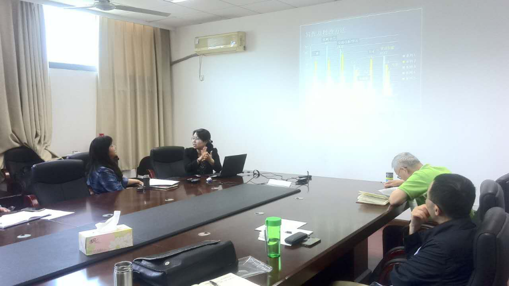 唐老师针对研究生阅读教学分享了自己在讲解文章时的教学理念,包括时刻提醒学生提高英语原文的分析能力,不仅仅是读懂句子,更要理解段落衔接和篇章架构,同时注意英语词汇表达的多样性,将阅读和写作很好的结合起来。朱老师就研究生英语教学的学生群体特点,教学难点,存在的问题进行了分析,同时向大家展示了雅思课程教学中学生录制的口语视频也展示了国际交流英语课程中学生团队合作的成果。金老师展示了通过问卷调查了解学生对上课方式,小组活动,作业形式以及老师批改作业方式等多个方面的需求,通过数据图表量化分了不同层次学生的英语学习心态和对课堂的期许。陆老师提出要让学生做他们喜欢的事情,才能从根本上调动学生学习英语的积极性,让学生愿意去写,愿意开口说。同时提出研究生思维能力培养的重要性,培养学生独立思考,批判性思考的能力是课堂教学方面不应忽视的重点。陆老师还介绍了下学期博士学术英语课程的设置以及相关网站建设的工作计划,遵循循序渐进的基本原则,一步一步达成教学改革和课程建设的目标。