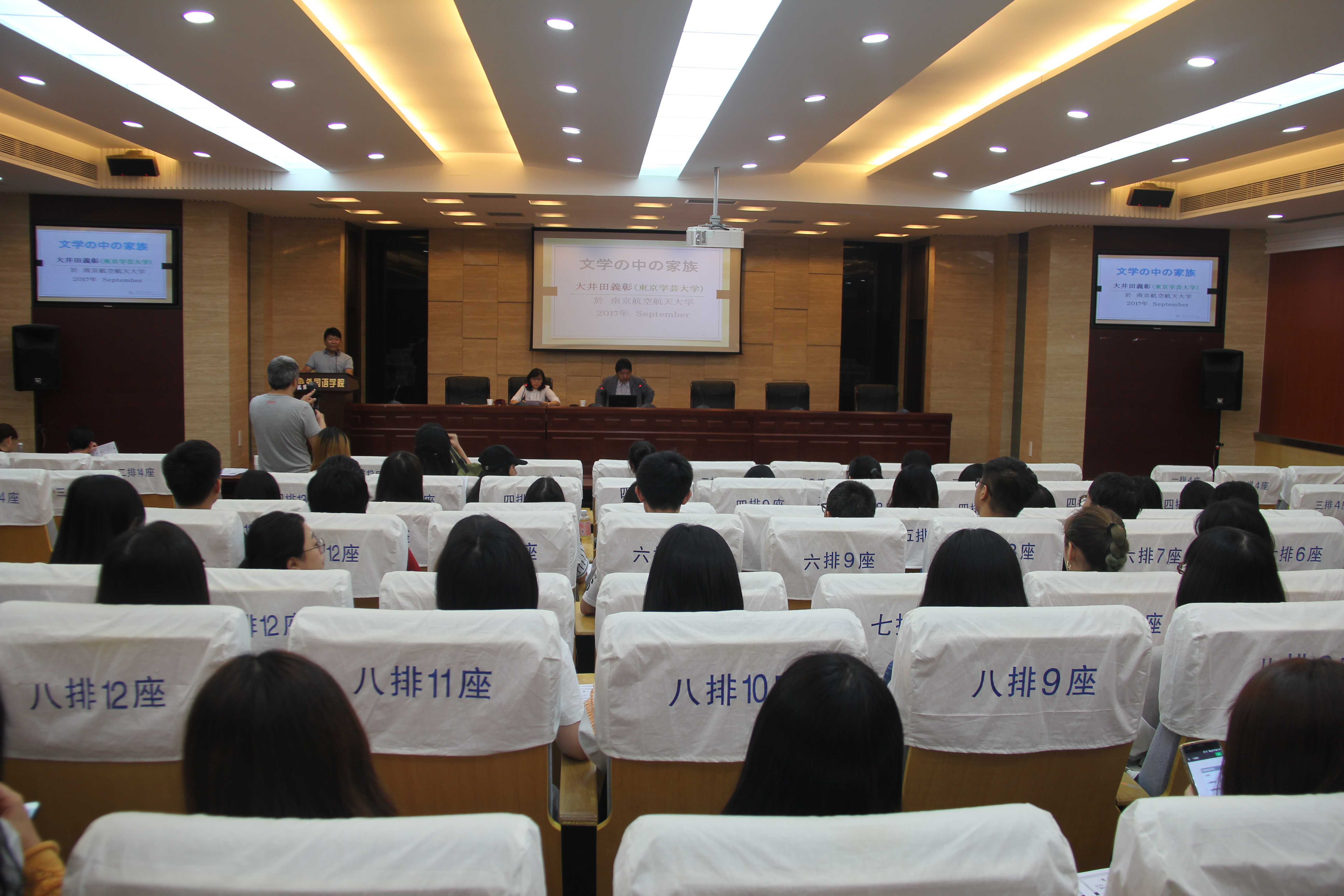 9月22日,东京学艺大学大井田義彰教授应邀在成人漫画 做了题为“文学中的家族”的精彩学术讲座。日语系主任窦硕华主持讲座。日语系张晋文副教授进行翻译,全系80余位师生聆听了讲座。