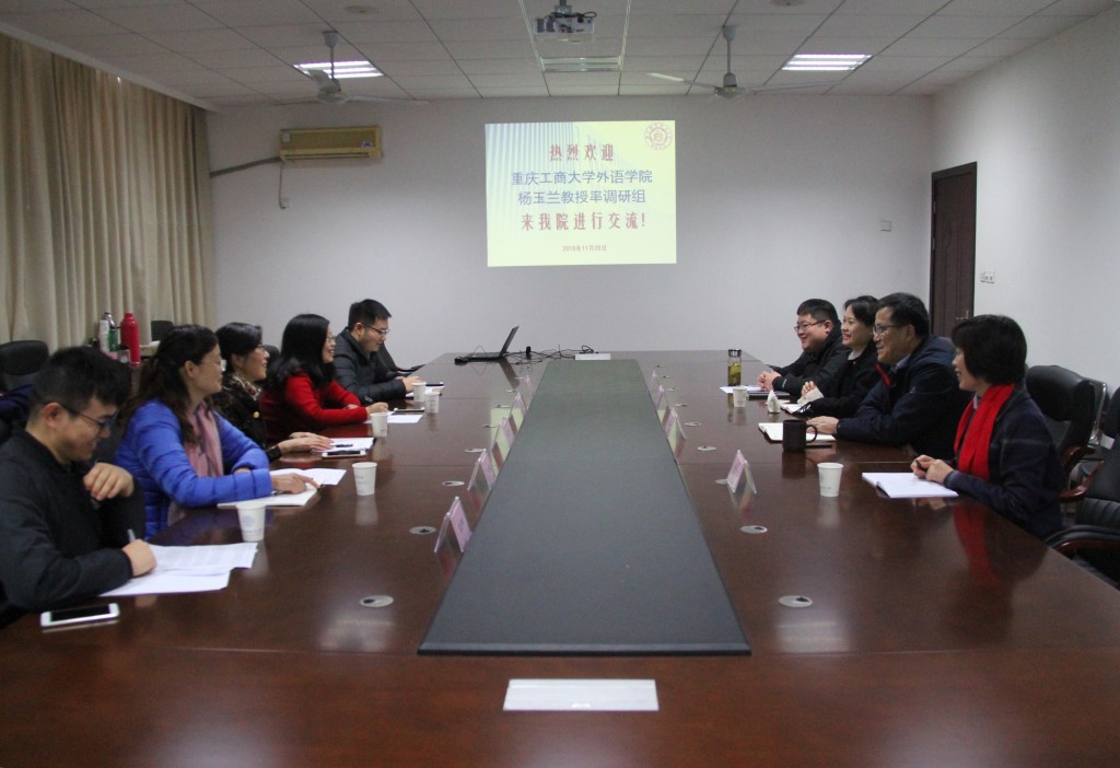 11月28日上午,重庆工商大学外语学院副院长杨玉兰教授一行5人来我院调研,就大学外语教学改革、课程体系建设、师资队伍建设和学生工作等方面进行座谈交流。成人漫画 院长范祥涛,大学外语教学部主任徐智鑫、副主任王秀文,团委书记杨一参加了此次调研会。