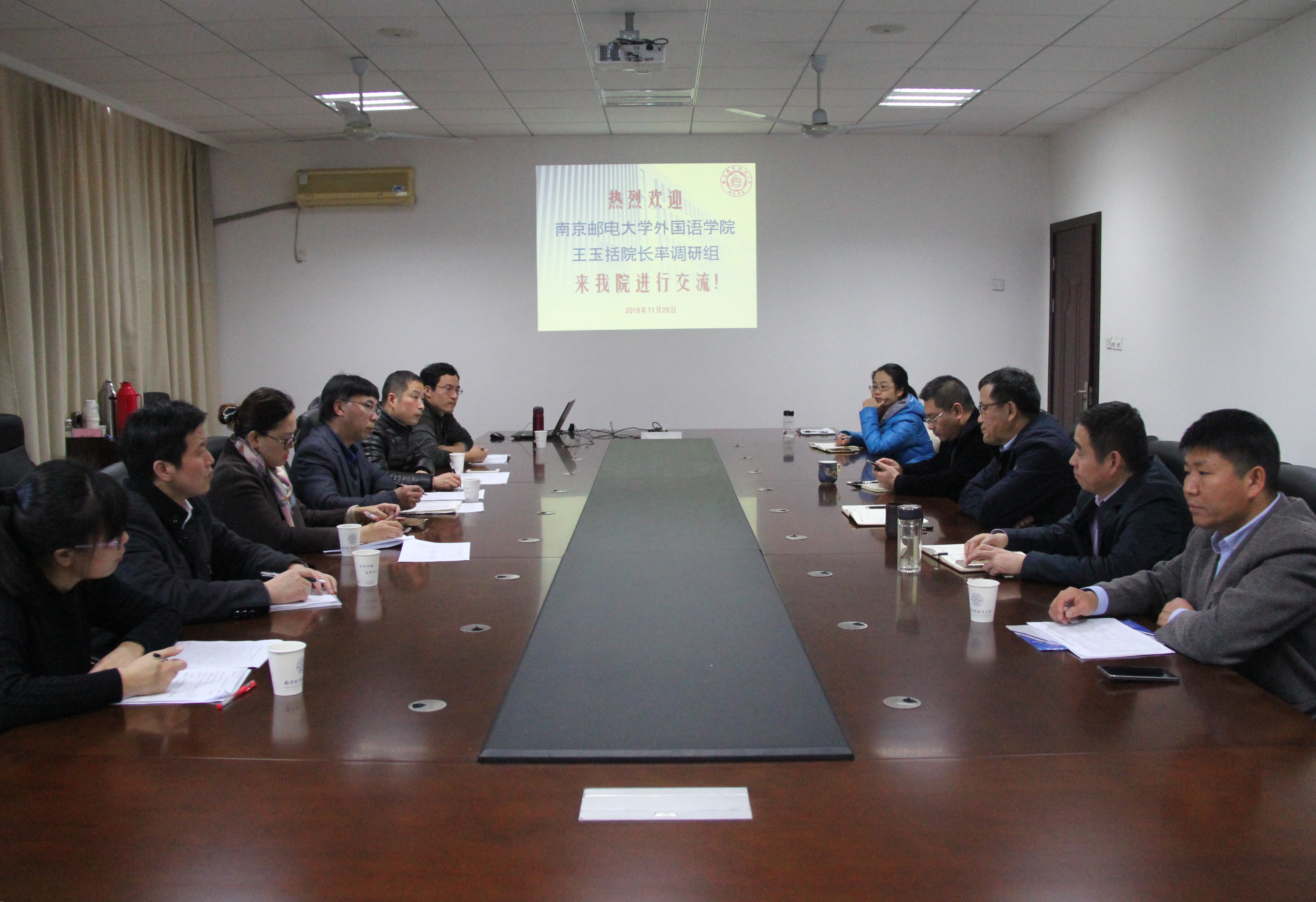 下午,南京邮电大学成人漫画 李炯英副院长带领调研组6人来院调研。院长范祥涛、副院长刘长江、徐以中,日语系主任窦硕华,教学部主任黄潜参加了调研会。