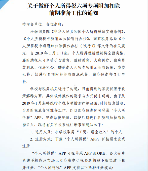 关于做好个人所得税六项专项附加扣除前期准备工作的通知