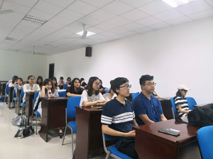 在经验分享阶段,陈俞仿主要围绕实习介绍、语言学习、文化差异和工作经验四个方面展开,对实习地的环境与工作内容进行了详尽的介绍,并分享了面对异文化冲击和独立生活等一些初涉世的体验与感悟,更不忘在分享过程中穿插讲述一些使人捧腹却又发人深省的生活片段,现场气氛活跃,同学们全神贯注聆听。
