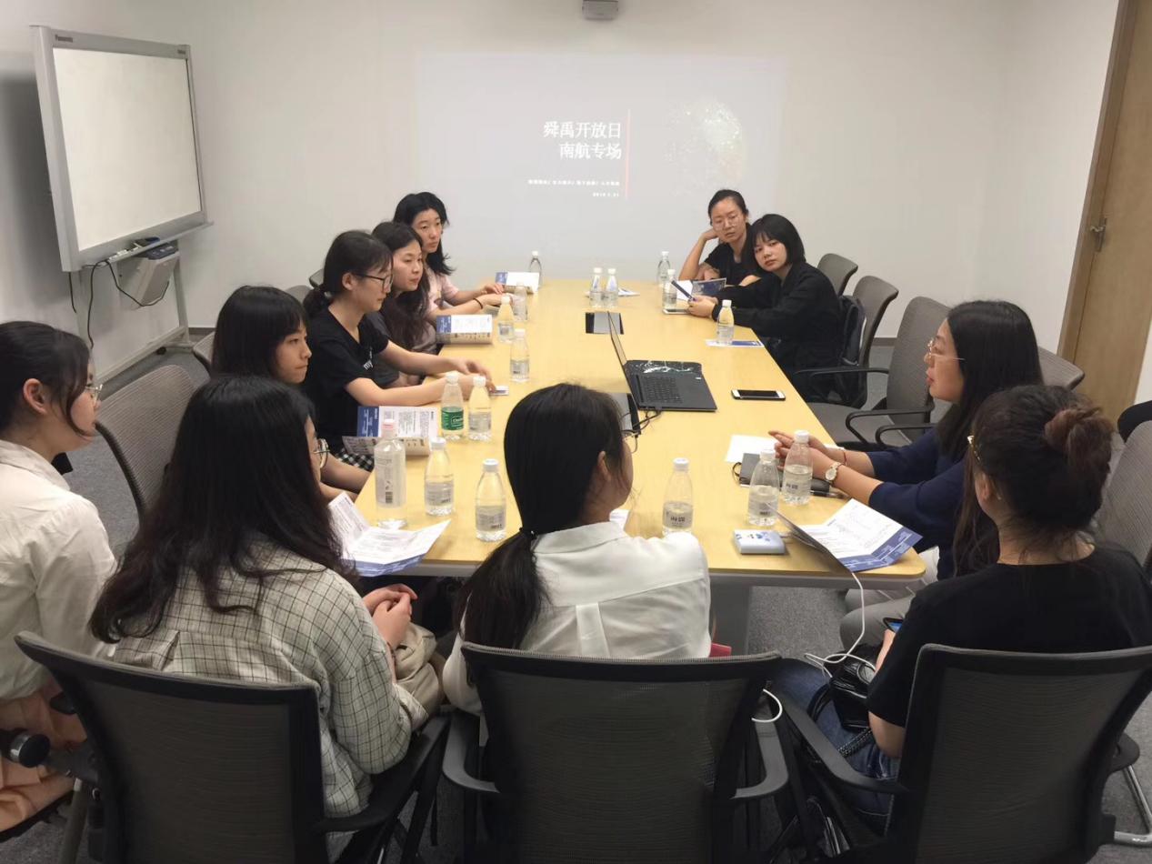 本次走访实践的特别嘉宾为成人漫画 2010届英语(民航方向)和2016届日语专业的毕业生,作为目前在舜禹任职的优秀院友,她们就职业发展经历和行业从业感受进行了分享。活动最后,舜禹集团总经理单杰也来到了现场,作为南航校友,他肯定了我校的优良学风和求学态度,鼓励同学们能多多了解专业对口行业,早做就业准备,同时对同学们加入舜禹表示热烈的欢迎。