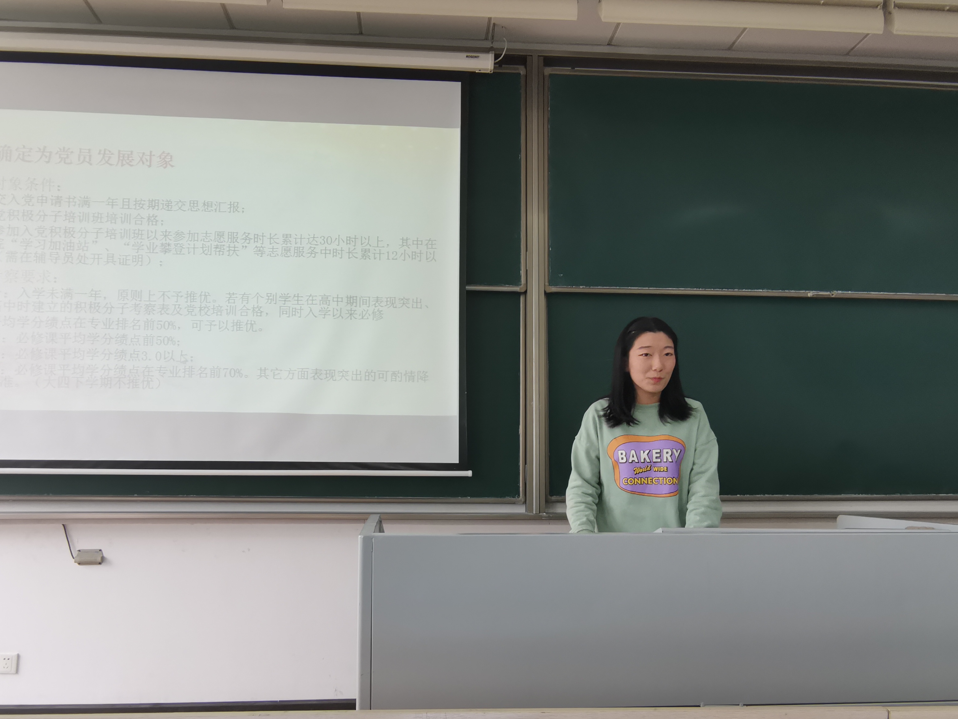 10月25日中午,成人漫画 在D1410教室顺利开展关于“党员发展流程”的专题分享会。2019级递交入党申请书的全体学生、其他年级对入党环节有困惑的同学参与,主讲人为本科生联合党支部宣传委员吴晨郡。