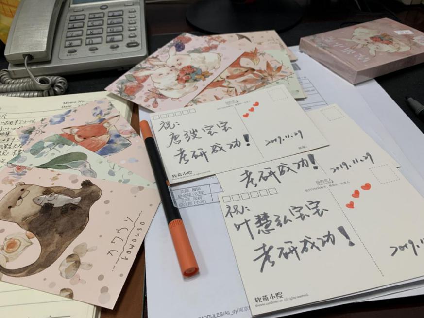 学院为每位考研学子悉心准备了暖心礼包,包括铅笔、橡皮、补充能量的小饼干和给予热量的暖宝宝,希望他们能保持充沛精力,以最佳状态迎接即将到来的考试。最暖心的是,每一位同学都收到了辅导员老师亲手写的加油卡片,感受学院送给大家最真挚的祝福。在送温暖的同时,辅导员刘凡玉询问了考研学生现在的复习情况,勉励同学们把握好最后冲刺阶段,既要坚定信心,也要劳逸结合,保持稳定的心态,为自己的考研之路画上圆满的句号。同学们表示,纵使备考最后阶段很辛苦,他们也一定会带着学院的祝福坚持到底!