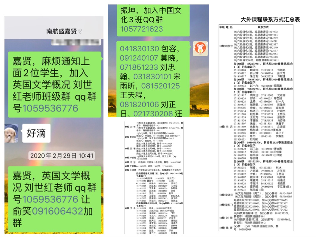 大学英语本学期开设基础必修课2门94个班,涉及近3400名学生;后续选修课20门,173个班,涉及近7000名学生;辅修课2门,3个班,涉及100左右人次;民族班及民族预科班英语3门,3个班,近200名学生。为了确保所有学生在开课前加入任课老师的班级联系群,除了学习通通知、直接通知老生等方式,教学部还联系教师系统整理汇总了班级群联系方式,委托本院辅导员通知各个学院辅导员,请学生及时加入班级联系群,经过繁琐的合作,所有课程在开课前均联系上了所有学生。