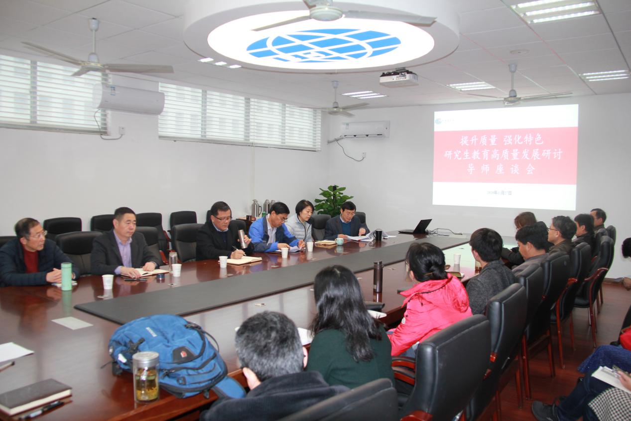 与会领导与研究生导师围绕程设置、教学质量、过程监控、论文质量、身心健康等内容深入讨论了研究生培养中出现的问题、困难,提出了可能性的解决办法,重点讨论了“导师是研究生培养第一责任人”要求中导师的权与责以及MTI研究生毕业论文如何更好地强化特色等问题。相关导师反映学生阅读量不够、理论素养有待增强,提出了关于设置预答辩强化学生论文过程管理、关注学生心理健康等具体建议。