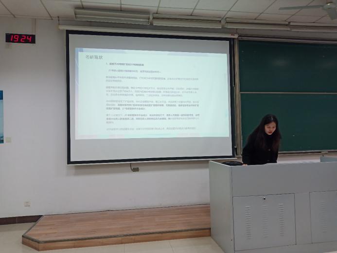 接着,杨雨柔同学就考研方向的行业调研进行了分享,以成人漫画 大学英语专业为例,具体讲解了行业调研时要注意考研形势、参考书目的选读、考研准备时间、复习备考策略等事项。