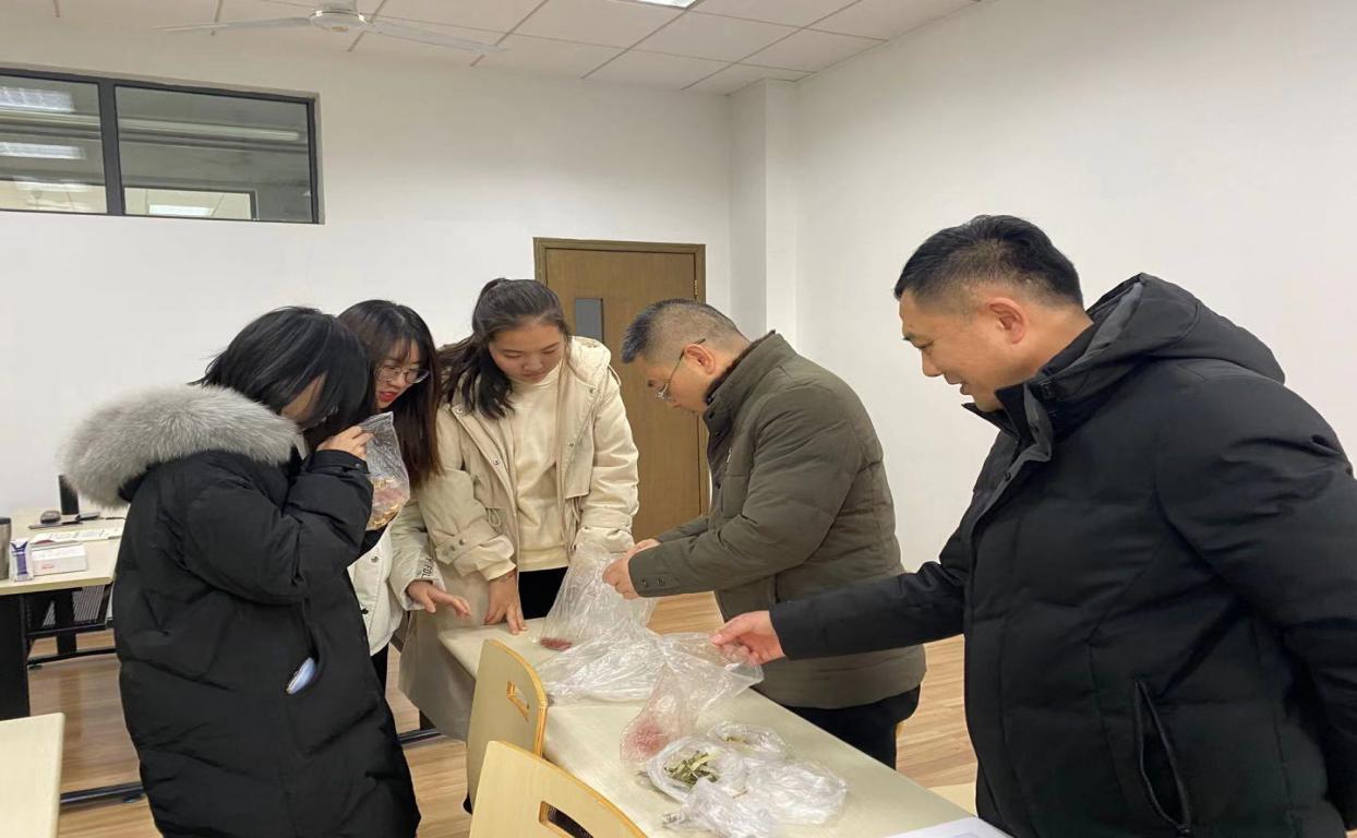 小组讨论时支部同学分为五组,每组分别领到了不同种类的中药材,大家热烈讨论找出不同中药材并辨别其功效,几位老师也一起加入认药大队,活动现场气氛活跃。
