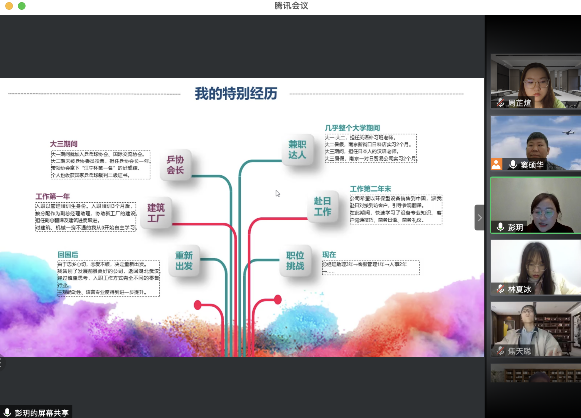 作为大三学生,很快将面临职业选择,如何进行合理的规划是目前较为重要的问题,彭玥细致的讲解启发了参会同学对于职业规划的思考,进一步明确了自身素质提升方向。