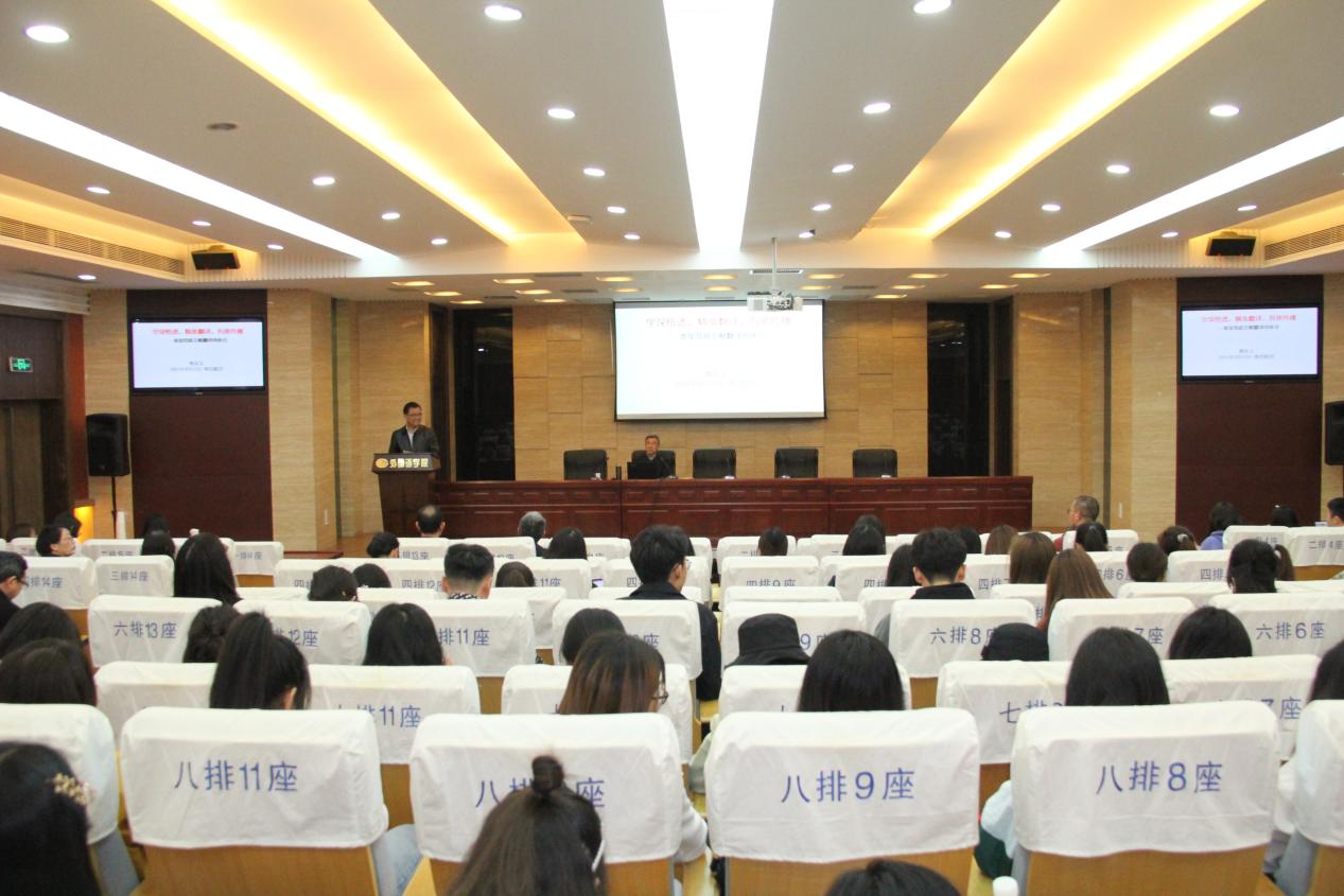 4月12日下午,中国翻译协会常务副会长、中国翻译研究院副院长黄友义莅临我校成人漫画 ,带来了主题为“学深悟透、精准翻译、有效传播——参加党政文献翻译的体会”的精彩讲座。讲座由成人漫画 院长范祥涛主持,学院150余位师生参与讲座,整个国际会议中心座无虚席。