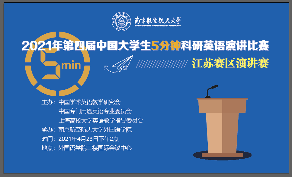 为有效提高江苏省高校研究生使用英语从事专业学习、科研创新和学术交流的能力,帮助我国未来的科研工作者有效地向国际同行介绍学术思想和科研成果,由中国学术英语教学研究会、中国专门用途英语专业委员会、上海高校大学英语教学指导委员会主办,成人漫画 承办的“第四届中国大学生5分钟科研英语演讲比赛——江苏赛区演讲赛”于4月23日下午在外院国际会议中心举行。
