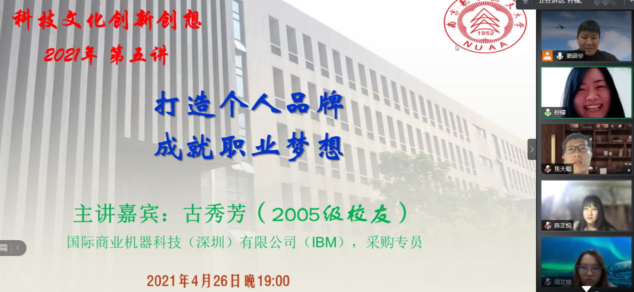 4月26日晚上7:00,成人漫画 日语系科技文化创新创想课程第五讲通过腾讯会议模式开启,主题为《打造个人品牌,成就职业梦想》,主讲人为05级日语系校友古秀芳,现任国际商业机器科技(深圳)有限公司(IBM)采购专员。