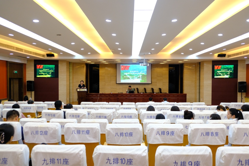 平旭老师聚焦“中国特色社会主义进入新时代”的重大政治论断,从“统筹中华民族伟大复兴战略全局和世界百年未有之大变局”这两个大局出发,深刻阐述了习近平新时代中国特色社会主义思想,将真实客观的史料与当代社会热点问题相结合,回顾了我国近年来所取得的历史性成果和重大变革,同时也对当今复杂多变的国际形势做了深入解读,要求我们在这个新的“觉醒年代”,要认清国内外形势,志存高远,积极作为。在座全体师生党员深受鼓舞。