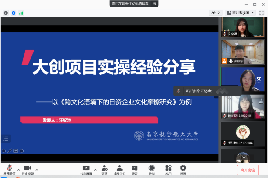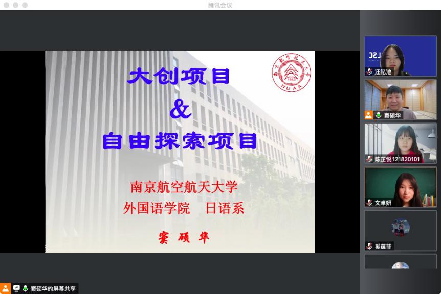 10月19日下午,成人漫画 日语系主任窦硕华副教授与汪钇池、陈芷悦和文卓妍同学组成宣讲团向全院学生介绍了大学生创新训练计划项目及自由探索项目。宣讲会通过腾讯会议模式开启,英语系、日语系同学及部分本科生导师参加了会议。