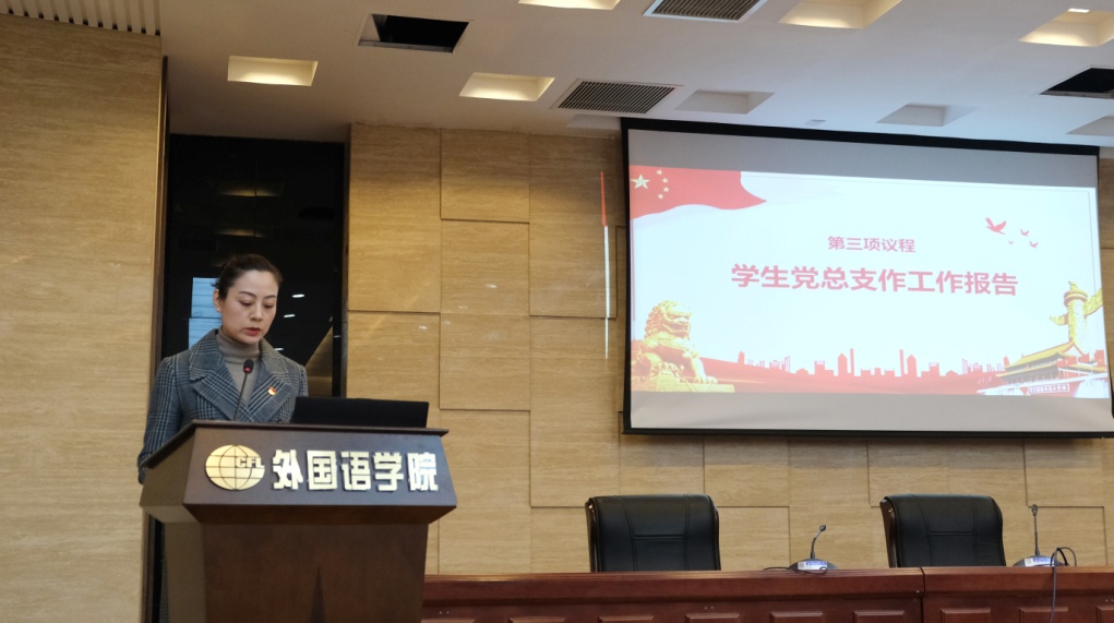 学生党总支组织委员李林泷主持大会。会上,左彤云宣读了《成人漫画 委员会关于同意成人漫画 学生总支委员会换届选举请示的批复》。