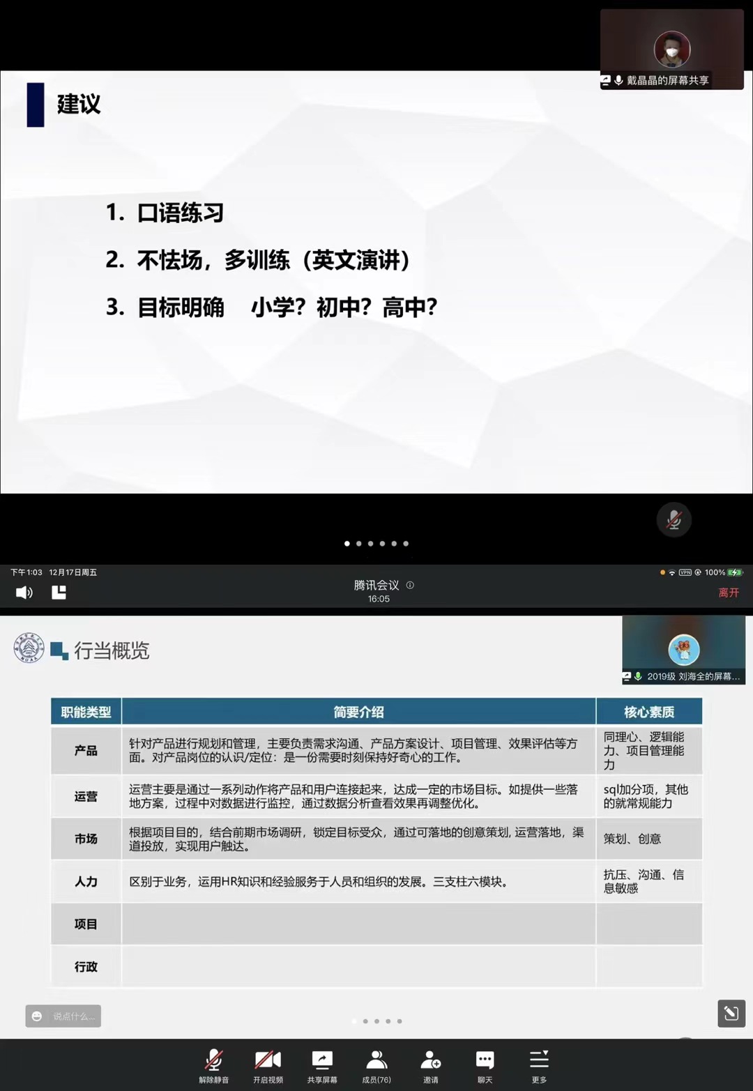 12月17日,成人漫画 面向2021级研究生开展了“职”引未来,共语研途线上公开月讲评,本次月讲评由研究生兼职辅导员李艳红主持召开,2021级全体同学参加,旨在为研一同学职业规划提供建议与指导。