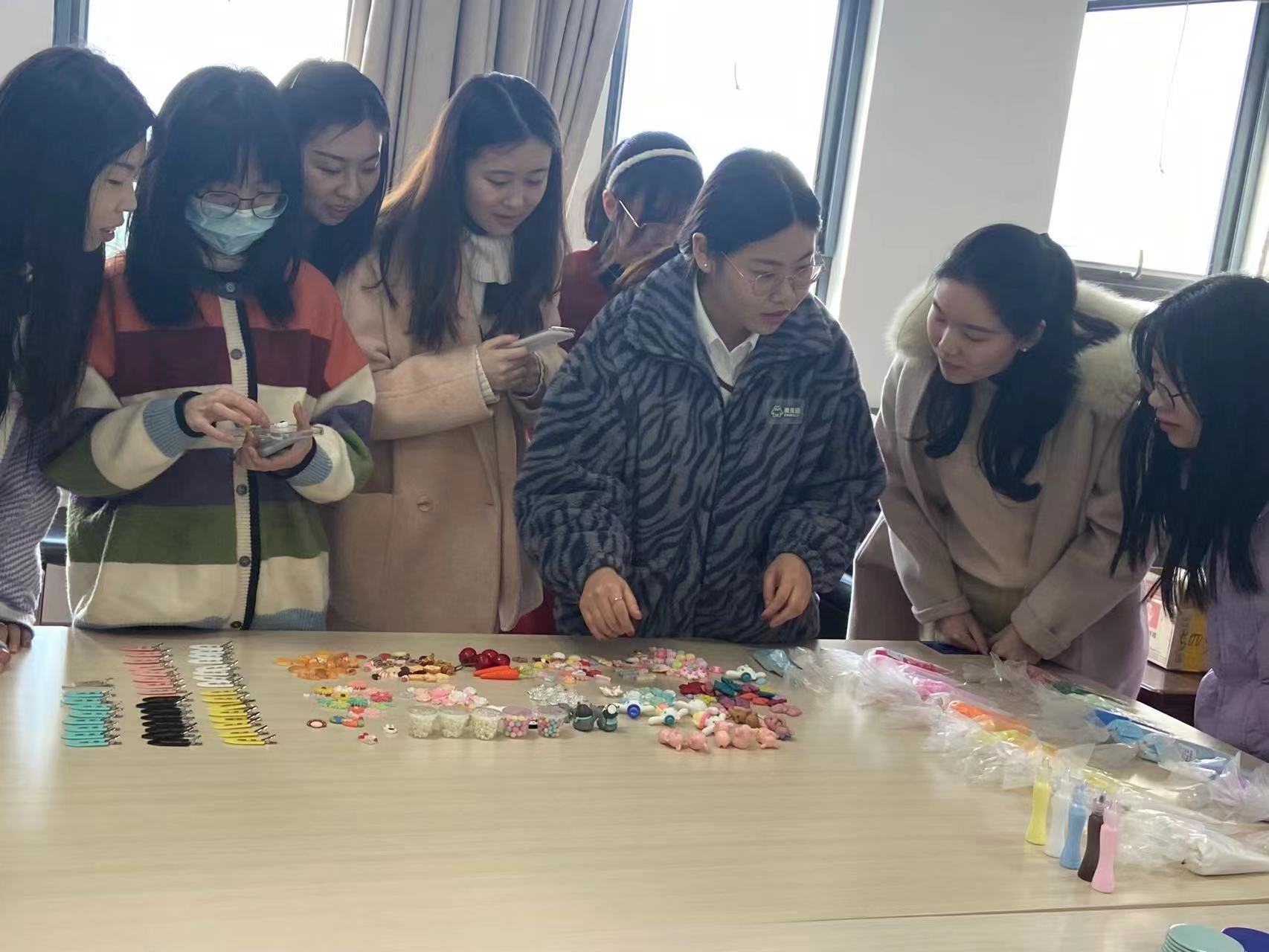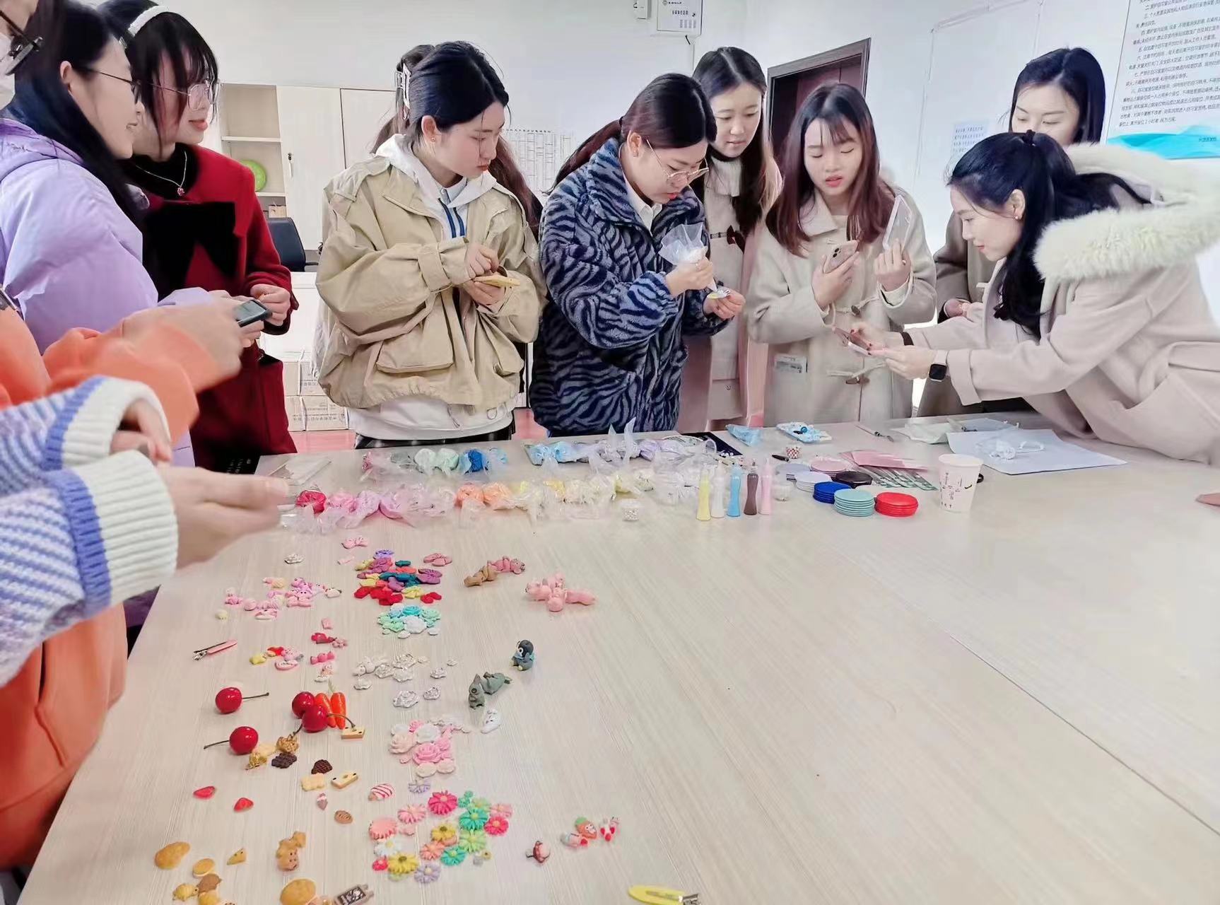 创意手工坊开展了创意手工DIY活动,邀请有手工特长的同学教大家进行手机壳、发夹等小物品的手工制作,为学院女生提供一次动手动脑、创造美的机会,在这个专属于自己的节日里为自己制作一份特殊的礼物。