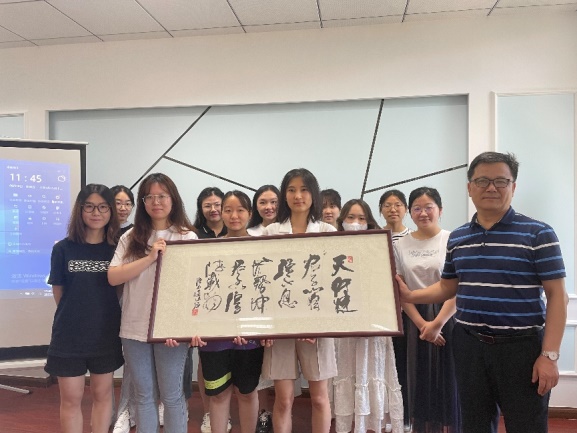 最后,范祥涛赠与毕业班同学们亲笔书写寄语——“天行健,君子以自强不息;地势坤,君子以厚德载物”,希望同学们在未来不断提高个人修养、练就高尚品格,像天宇一样运行不息、不屈不挠,像大地一样坚强包容,早日成为国家栋梁。