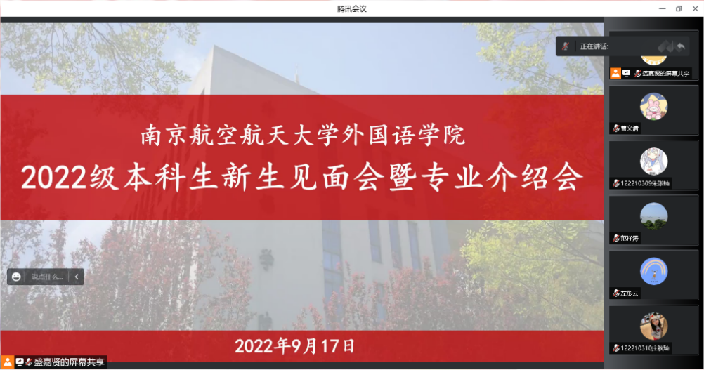 9月17日,为使2022级本科生新生更快熟悉大学生活,加强对所在学院及专业的了解,成人漫画 师生相聚于云端,开展了2022级本科生新生见面会暨专业介绍会。学院党委书记左彤云、院长范祥涛、党委副书记梁薇、副院长徐以中、副院长姜礼福,英语、日语系教师代表,2022级本科生辅导员及全体本科生新生参加了本次见面会,会议由梁薇主持。