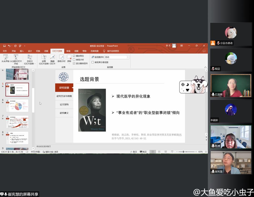 文学组选题视角多元,且呈现出跨学科属性,涉及到当代外国文学前沿话题和研究热点。信慧敏副教授和陈博副教授对同学们的研究成果给予了肯定,并提出了切实可行的修改建议。
