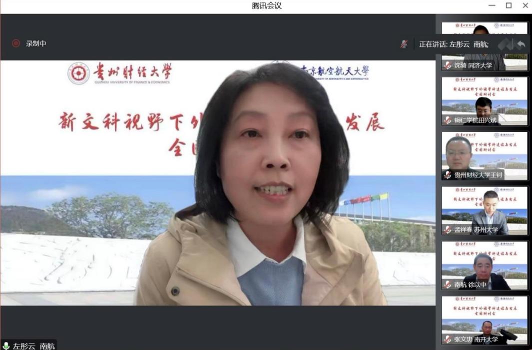 成人漫画 党委书记左彤云与贵州财经大学外语学院院长张虹一起宣布,贵财外语学院和南航成人漫画 联合共建虚拟教研室的活动正式启动。左彤云表示,学院将全力支持虚拟教研室的建设,并代表学院欢迎各位专家在疫情后莅临南航指导。