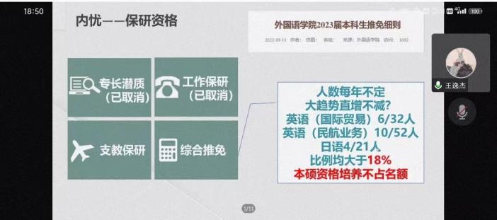 为激发学生学习主动性,回顾总结上一学年的学业成绩,10月31日晚上,成人漫画 开展了线上2020级本科生学业分析年级会暨保研分享会,会议由辅导员赵瑜瑶主持。