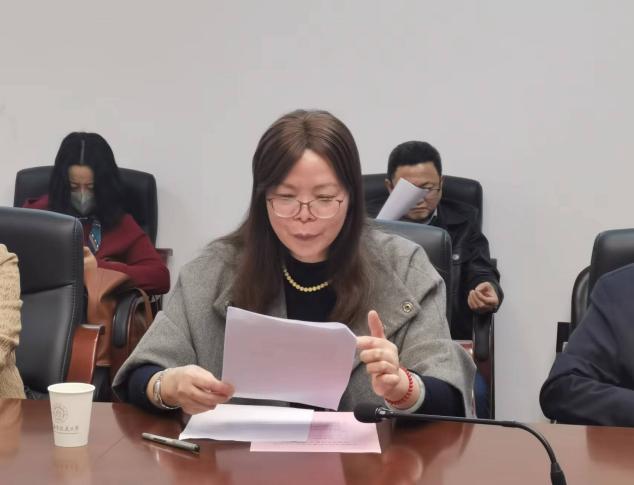 谢小苑和王鹏飞代表学院教学督导组发言,她们从试卷命题、试卷评阅、本科论文指导、课堂教学等方面反馈了督导组日常检查情况,提出了加强对论文指导老师的分类管理,多开展集体备课、教学观摩,加强对新教师的指导等建议。