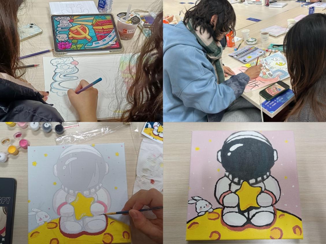 为了庆祝党的二十大胜利召开,大力弘扬以爱国主义为核心的伟大民族精神,12月3日,成人漫画 与机电学院联合开展了“喜庆二十大,巧手绘未来”创意手工坊活动。鼓励同学们以绘画形式表达对祖国的美好祝福,培养当代大学生的爱国情怀。成人漫画 与机电学院辅导员、学生党员和入党积极分子参加了本次活动。