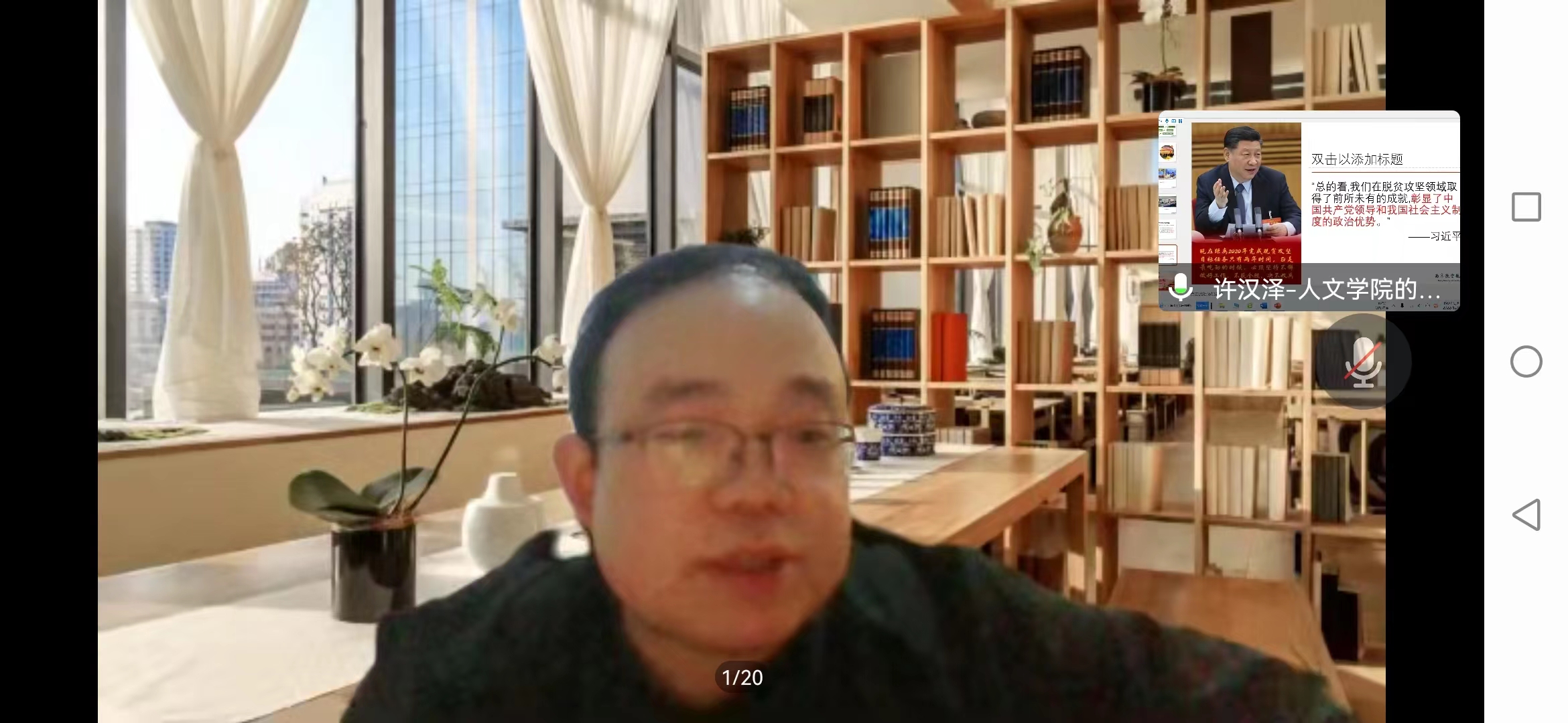为深入学习贯彻党的二十大精神,12月8日,成人漫画 举行理论学习中心组(扩大)学习会,邀请人文与社会科学学院副教授许汉泽进行在线授课。学院党委书记左彤云担任主持,全院师生党员、发展对象、入党积极分子参加。