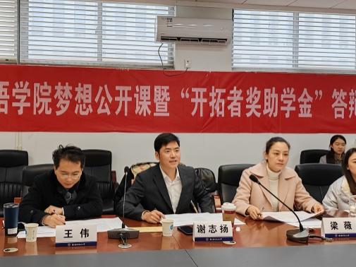 为激励成人漫画 学生注重团队合作、积极进取、勇于担当、全面发展、成长成才,并资助家庭经济困难学生,学院2010届杰出校友冯科茗、谢志扬、单鹤在成人漫画 设立“开拓者奖助学金”,并于12月9日成功举办成人漫画 梦想公开课暨“开拓者奖助学金”答辩。开拓者奖助学金资助人谢志扬,成人漫画 党委副书记梁薇,英语系副主任王伟,学院团委书记李萍,本科生辅导员彭欢、赵瑜瑶担任评委。公开课由学院2019级英语专业、2021年茗扬开拓者奖学金获得者张欣怡主持,学院各年级同学通过腾讯会议线上观摩。