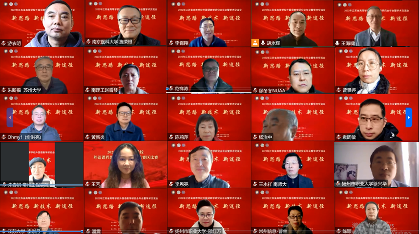 12月25日,主题为“新思路 新技术 新途径”的2022年江苏省高等学校外国语教学研究会年会暨学术交流会通过线上的方式隆重召开。本次会议由江苏省高等学校外国语教学研究会主办、我校成人漫画 承办,研究会会员及来自全国的学者师生近百人参加了会议。