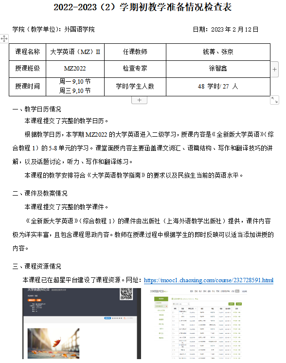 开学前一天学院召开系部主任书记会议,部署落实新学期工作,同时按第一周开课教师数的40%随机抽取课前准备资料进行检查登记,有问题均及时反馈交流,考试安排也有序开展,配合有关学院做好特殊情况考试安排。