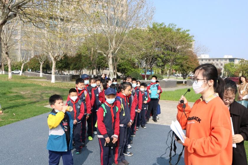 4月1日,成人漫画 S2022级研究生学硕团支部与南京青风志愿者服务中心、滨江外国语小学联合开展研学活动,滨江外国语学校四年级部分学生代表来我校御风园参观。