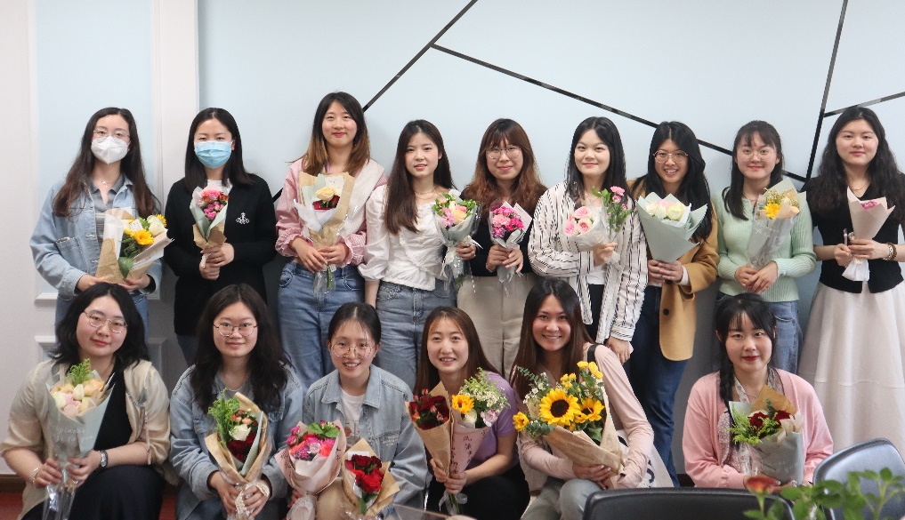 破冰活动后,雷若岚介绍了不同种类鲜花的名称和种类,从花材选择、风格搭配和鲜花包装等方面进行了具体讲解,为同学们推荐了操作性极强的包装教程。在轻松愉悦地氛围中,同学们尽情地发挥自己的创意,巧妙构思、悉心修剪,鲜花被赋予了新的生命。在满室芬芳和欢声笑语中,一束束精美别致、鲜活艳丽的插花作品跃然眼前。