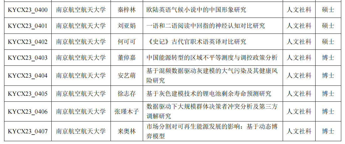 硕士研究生首次获批省研究生科研创新计划项目。
