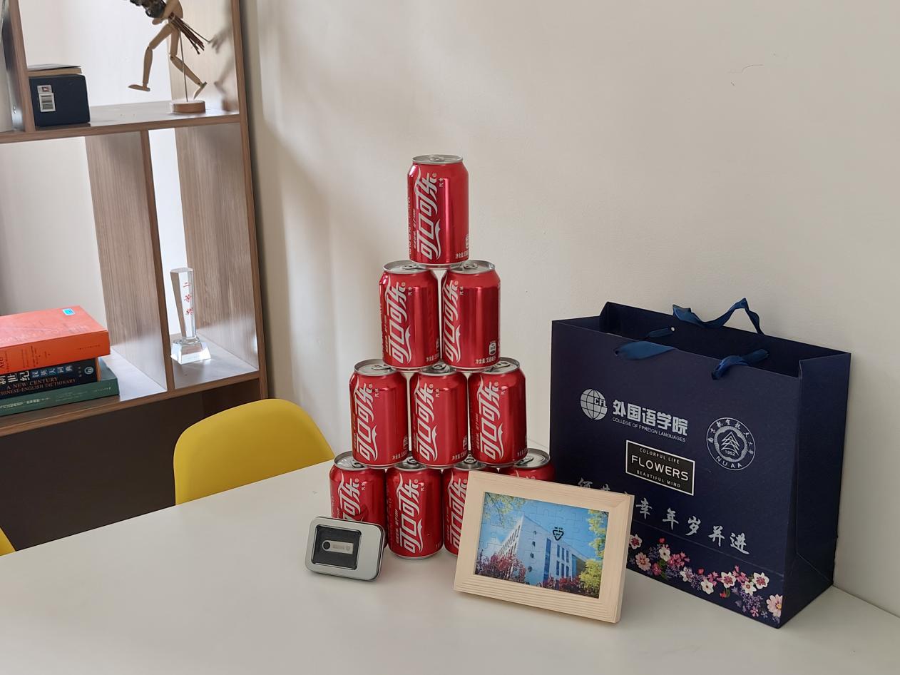 新生大礼包中包含“四重心意”:主题迎新可乐、成人漫画 拼图、校园地图、定制款U盘。礼物兼顾美观与实用,也传递了外院师生对全体新生的关心和热情。