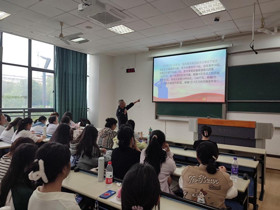 针对近年来电信网络诈骗高发的现状,为进一步提升学院学生的自我保护意识、防范意识,预防网络电信诈骗,切实保护自身财产信息安全,10月19日,成人漫画 开展了防范电信网络诈骗专题宣讲活动。活动邀请了江宁公安分局开发区派出所驻南航警务室娄军来警官担任主讲人,成人漫画 团委书记李萍、本科生研究生学生代表参加本次活动。