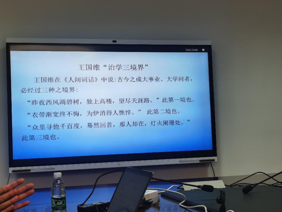 在讲座中,时卫国教授着力从专业、知识与文化三大系统的建构阐述了高质量翻译的实现路径,强调了母语文化建设的重要性、介绍了加强母语文化建设的方法,最后以王国维“治学三境界”结束话题。