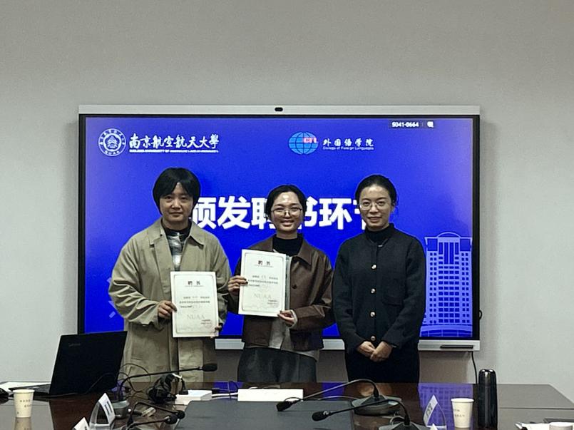 在大会的最后,学院党委副书记吴科颖为2023年新加入本科生导师团队的杨婷、周蕾两位老师颁发聘书,鼓励老师们以优秀本科生导师为榜样,做学生成长的良师益友。