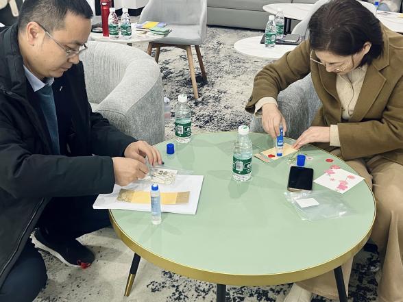 最后,两位老师和同学们共同用植物标本制作了独一无二的书签。书签样式各不相同,但都体现了制作者对文学阅读的热情与创造力和对生活的美好愿景。书签制作完成后,师生互赠书签,同时寄予对方祝愿与期待,留下一份暖冬中的美好回忆,为活动画上了完美的句号。