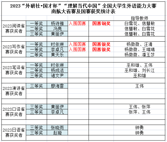 近日,2023年外研社国才杯“理解当代中国”全国大学生外语能力系列大赛落下帷幕,我校选手在成人漫画 竞赛团队教师的精心组织和指导下取得了骄人的成绩,其中全国总决赛3项获奖,江苏省复赛获奖14项。