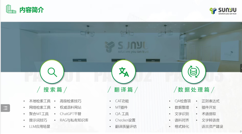 进入翻译篇,尚经理详细介绍了CAT(计算机辅助翻译)功能,帮助同学们了解如何利用这些工具提高翻译效率。此外,他还提到了QA(质量保证)检查项,强调了翻译质量评估的重要性。在介绍过程中,尚经理还提及了MT插件和ChatGPT平替,这些现代技术工具的出现为翻译行业带来了新的变革。