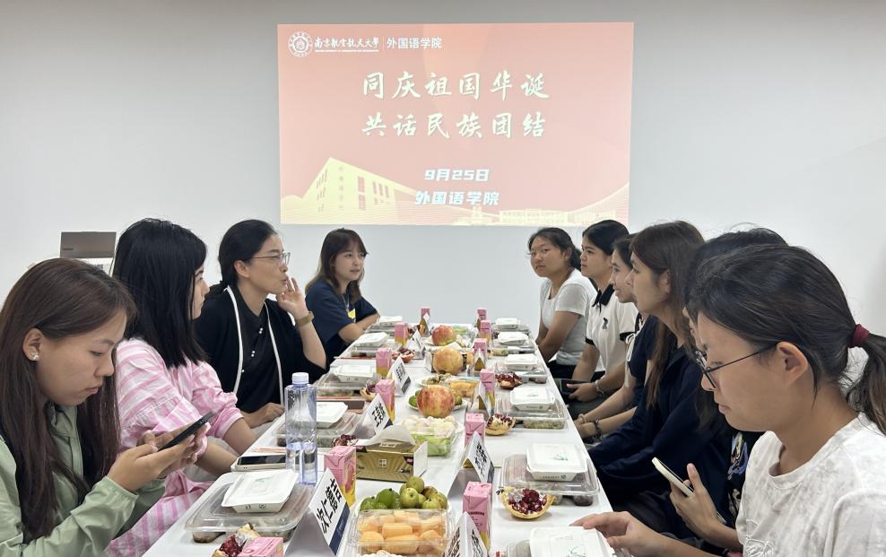 习近平总书记在中央民族工作会议上强调,要以铸牢中华民族共同体意识为主线,推动新时代党的民族工作高质量发展。为庆祝中华人民共和国成立75周年,关心关爱来自14个省份的34名少数民族同学,9月25日和26日,成人漫画 在将军路校区、天目湖校区共同举办了“同庆祖国华诞,共话民族团结”多民族学生午餐会。成人漫画 党委书记左彤云、党委副书记吴科颖,英语系班主任姜上、王美姝,本研各年级辅导员及各民族学生代表共同参加了本次午餐会。