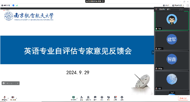 9月29日,成人漫画 英语专业自评估专家意见反馈线上会顺利召开。会议由成人漫画 副院长徐智鑫主持,评估专家教育部高等学校英语专业教学指导分委员会秘书长、广东外语外贸大学冯光武教授、北京航空航天大学任伟教授、国防科技大学陈春华教授、教师发展与教学评估中心主任朱建军、教务处副处长邓晶出席反馈会,英语专业负责人、全体教师及教学办老师参加会议。