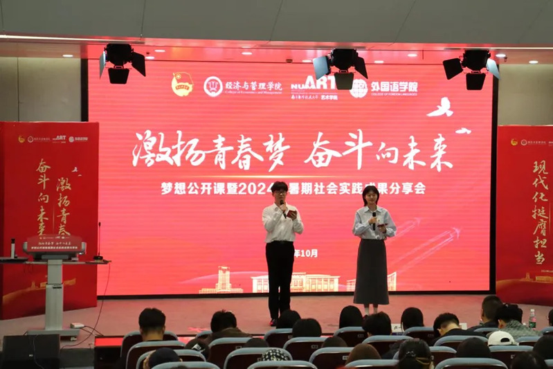 10月11日下午,经济与管理学院、艺术学院、成人漫画 联合举办的“激扬青春梦,奋斗向未来”梦想公开课暨2024年暑期社会实践成果分享会在我校天目湖校区巡天楼一楼报告厅成功举办。经济与管理学院党委委员、管工系教师罗正军,艺术学院党委副书记卢一亭,成人漫画 党委副书记吴科颖,各学院的团委书记、辅导员老师们以及2024级本科生出席了此次活动。